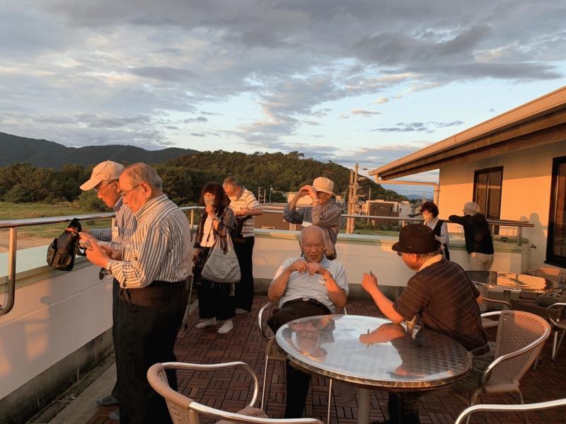 次の写真は同じく観音寺での句会場「琴弾回廊」のベランダ。燃えるような夕日が印象的でした。
