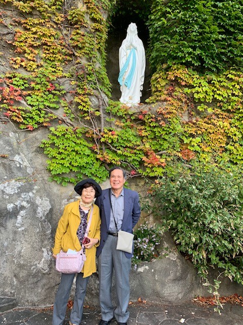 写真は2019年9月、函館吟旅一日目、トラピスト修道院のルルドの前でのご夫婦。