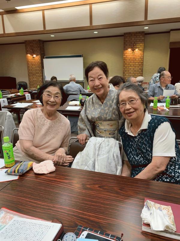 写真はかなり古いですが、3年前くらいのかつらぎ友の会総会での写真。左端が美知子さん、中央が田島もりさん、右端が森脇富美江さんです。