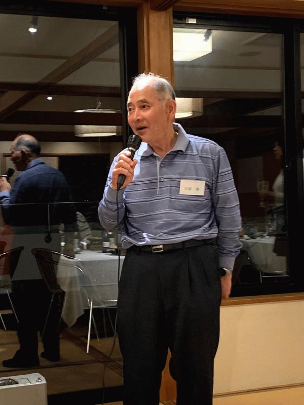 写真は昨年6月に四国観音寺・金刀比羅宮への洗心会吟旅で、懇親会でスピーチされる増さん。