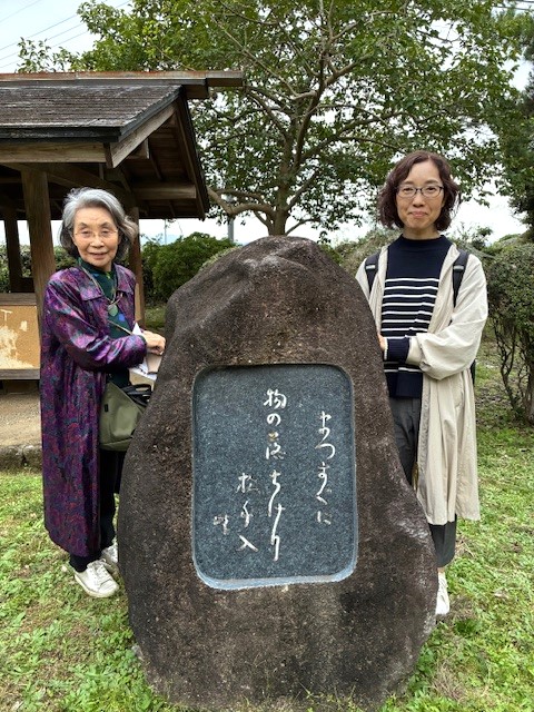 かつらぎの三句碑を訪れた時の写真。由希子さんは峠句碑の横で、幸村沙羅さんと一緒に。