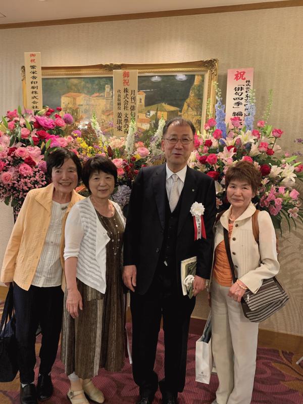 最後の写真は兵庫同人会総会での集合写真。前列一番左の中腰になって写っておられます。文子さんがおられると場が華やぎます。